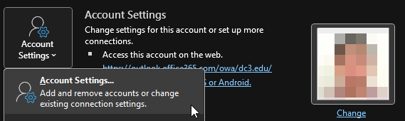 Click the Account Settings button, and then select Account Settings again from the dropdown menu.